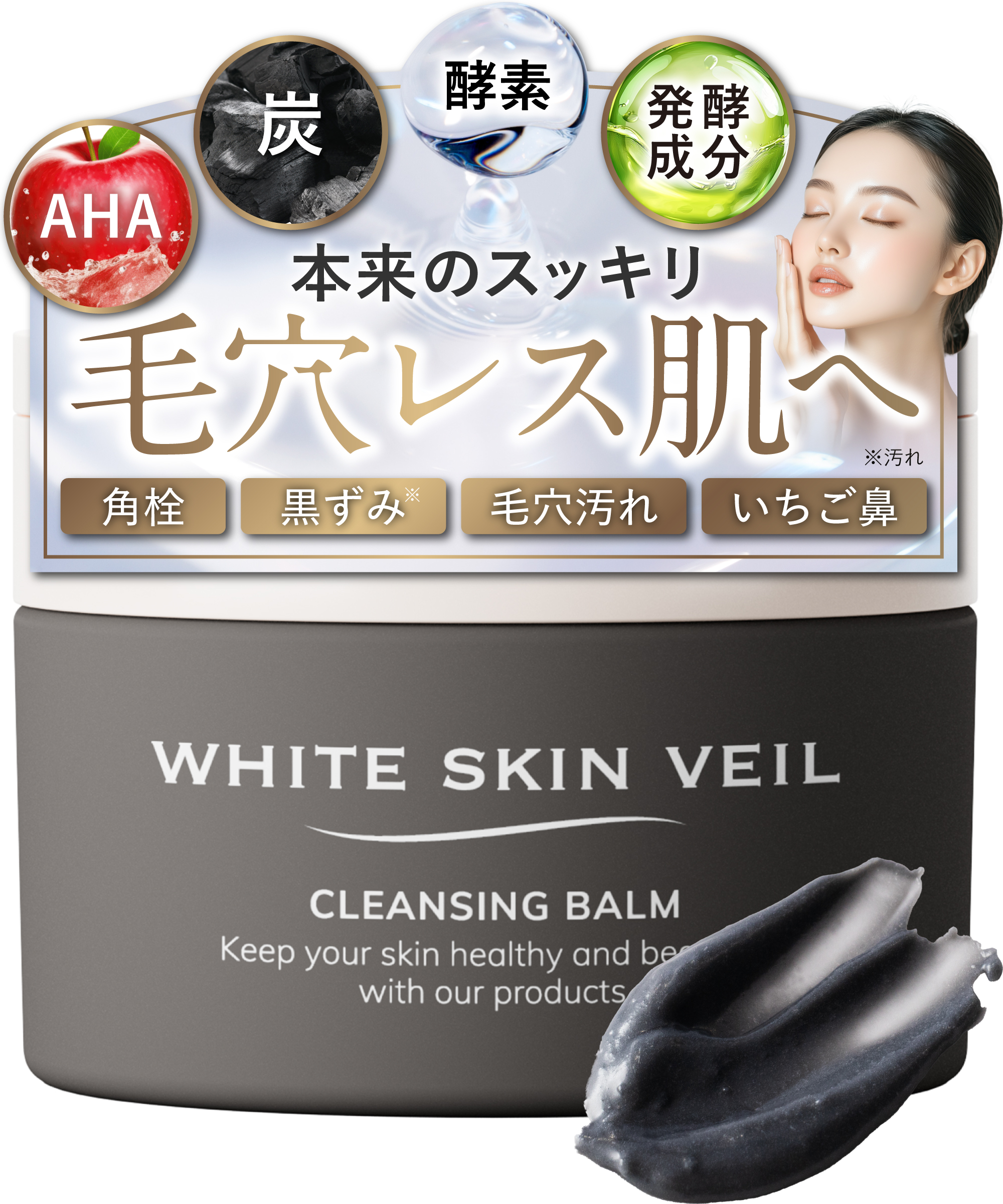 クレンジングバームのAmazon用クリエイティブを作成しました。撮影と3DCGを組み合わせることで独特な表現を実現しました。